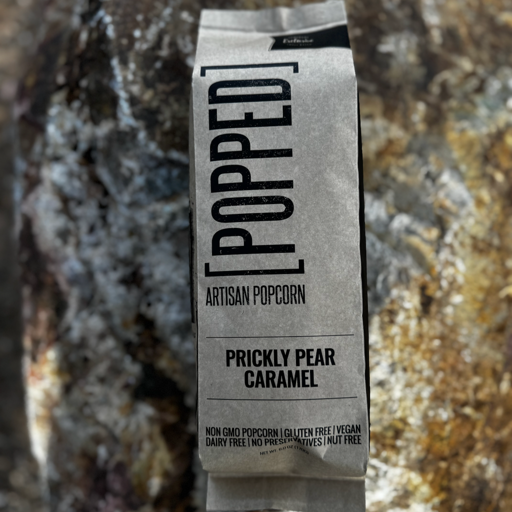 Non GMO popcorn, rice bran oil, pure cane brown sugar, corn syrup (Non HFCS), prickly pear syrup, sea salt, baking soda, cream of tartar, sunflower lecithin